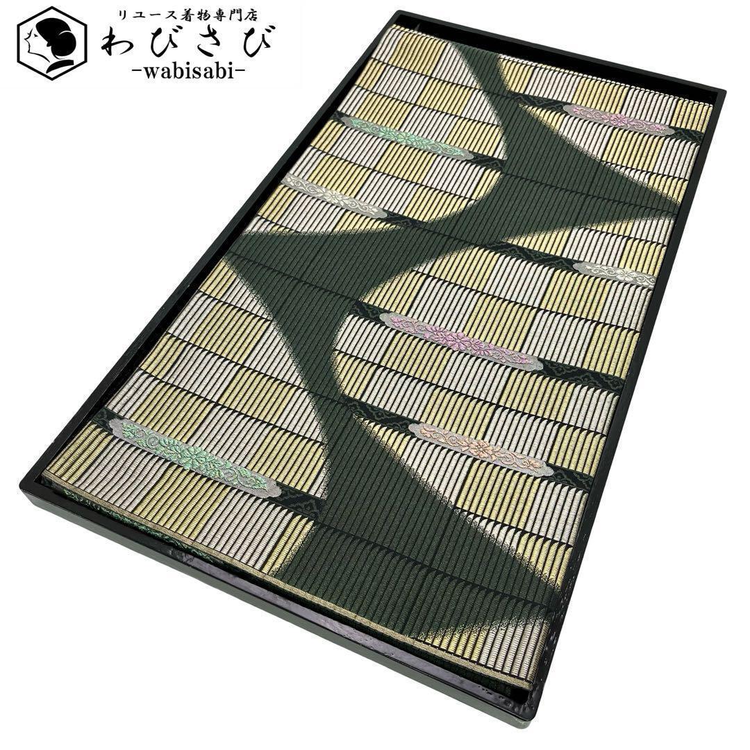- 袋帯 モダンな織模様 花柄 金銀糸 青漆色 フォーマル O-4210 着物 きもの kimono 和服 和装 中古 リサイクル着物 【送料無料】