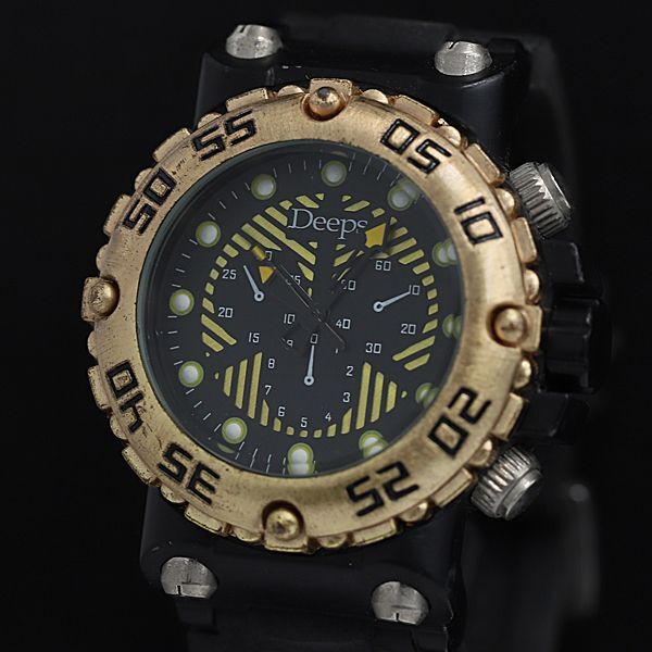 - 稼働 良品 ディープス QZ BA389 黒文字盤 クロノグラフ ラウンド メンズ腕時計 TCY2000000 NSK