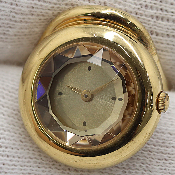 - 稼動 リングウォッチ QZ 605411 ゴールド文字盤 ラウンド カットガラス レディース腕時計 2000000 NSK OMI