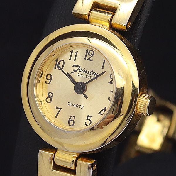 - 稼働 良品 ファインステン QZ ゴールド文字盤 ラウンド レディース腕時計 NKG