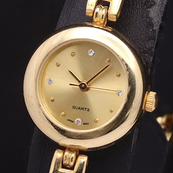 - 稼働 良品 アンティーク QZ 石付 ラウンド ゴールド文字盤 レディース腕時計 YSD