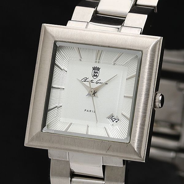 > 稼働 美品 クリスチャンジョルジュ CG-1008E 定価¥45,000- スクエア カットガラス 銀文字盤 デイト QZ メンズ腕時計 NSY 2000000 NSK
