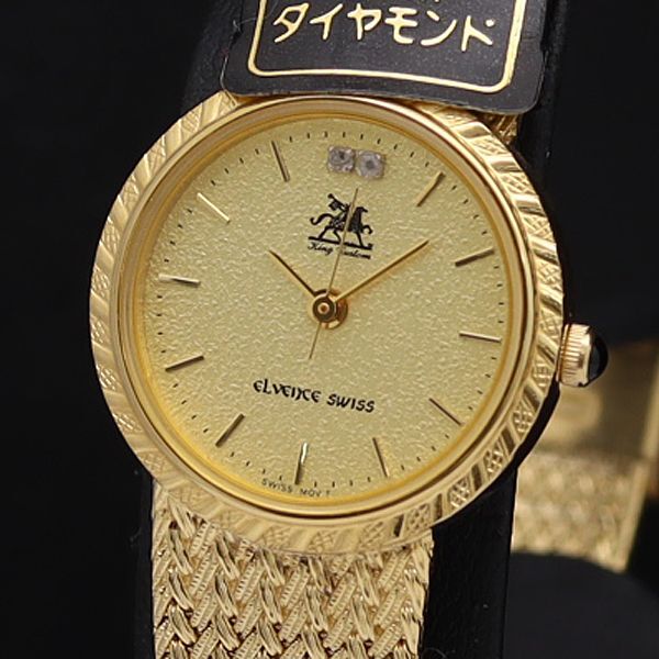 - 稼働 美品 箱付 エルヴァンス QZ EL-525D ゴールド文字盤 石付 ラウンド レディース腕時計 ECT 9044000SMD
