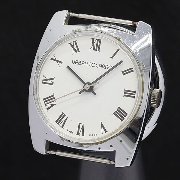 - アーバンロカルノ 手巻き ローマン ラウンド スイス製 アンティーク 白文字盤 メンズ腕時計 STU
