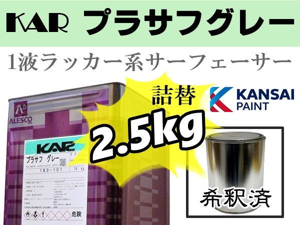 - ■関西ペイント【KAR プラサフ 希釈済2.5kg】■1液ラッカー系プラサフ/サーフェーサー/鈑金塗装・下地補修●2液ウレタン系の上塗りもOK