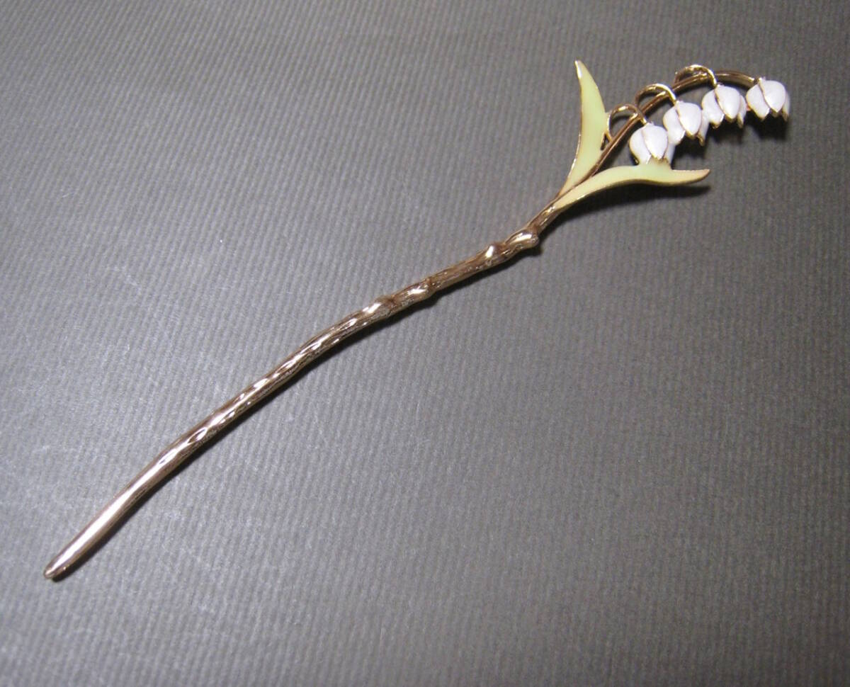 - 鈴蘭 一本差し 彫金 簪 未使用品 和装 洋装 髪飾り 白色 花 かんざし