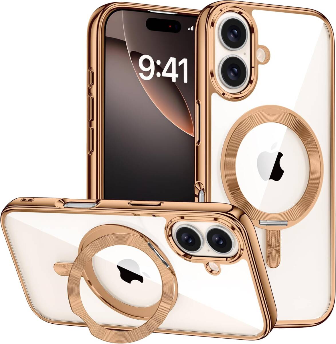 > iPhone 16 Plus 用 ケース MagSafe対応 CDリング 360°回転スタンド 縦横両対応 真空メッキバンパー Gunwon スマホケース 米軍規格