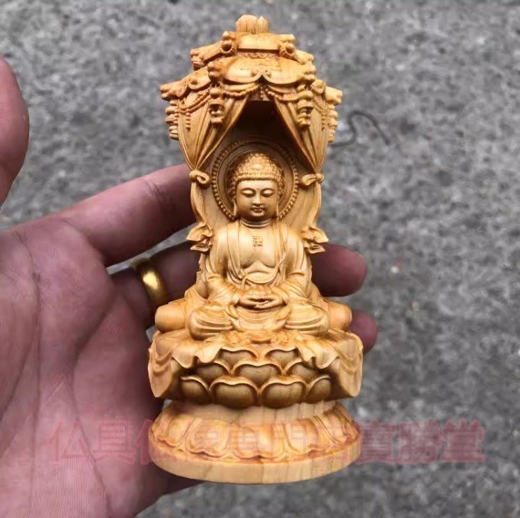 - 【寶勝堂】珍品★木彫仏像 三面 西方三聖 座像 阿弥陀仏三尊(観世音菩薩 阿弥陀仏 勢至菩薩)彫刻 仏教工芸