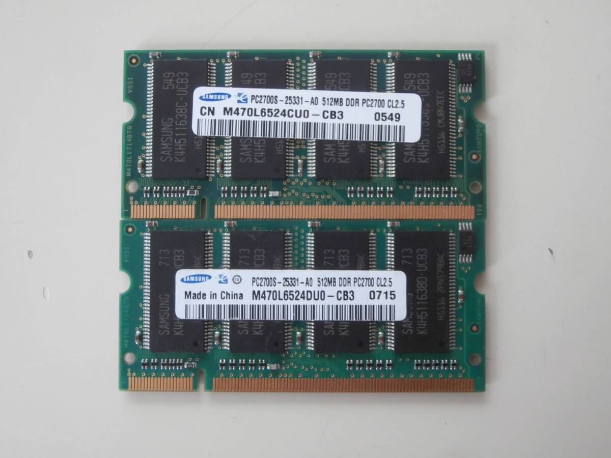 - DDR 333 PC2700 200Pin 512MB×2枚セット SAMSUNGチップ ノート用メモリ