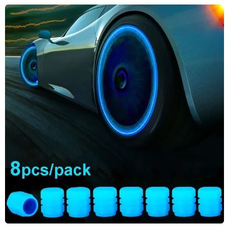 - 送料無料 未使用品 8個セット バルブキャップ 蛍光 ブルー 車 クルマ 自転車 バイク