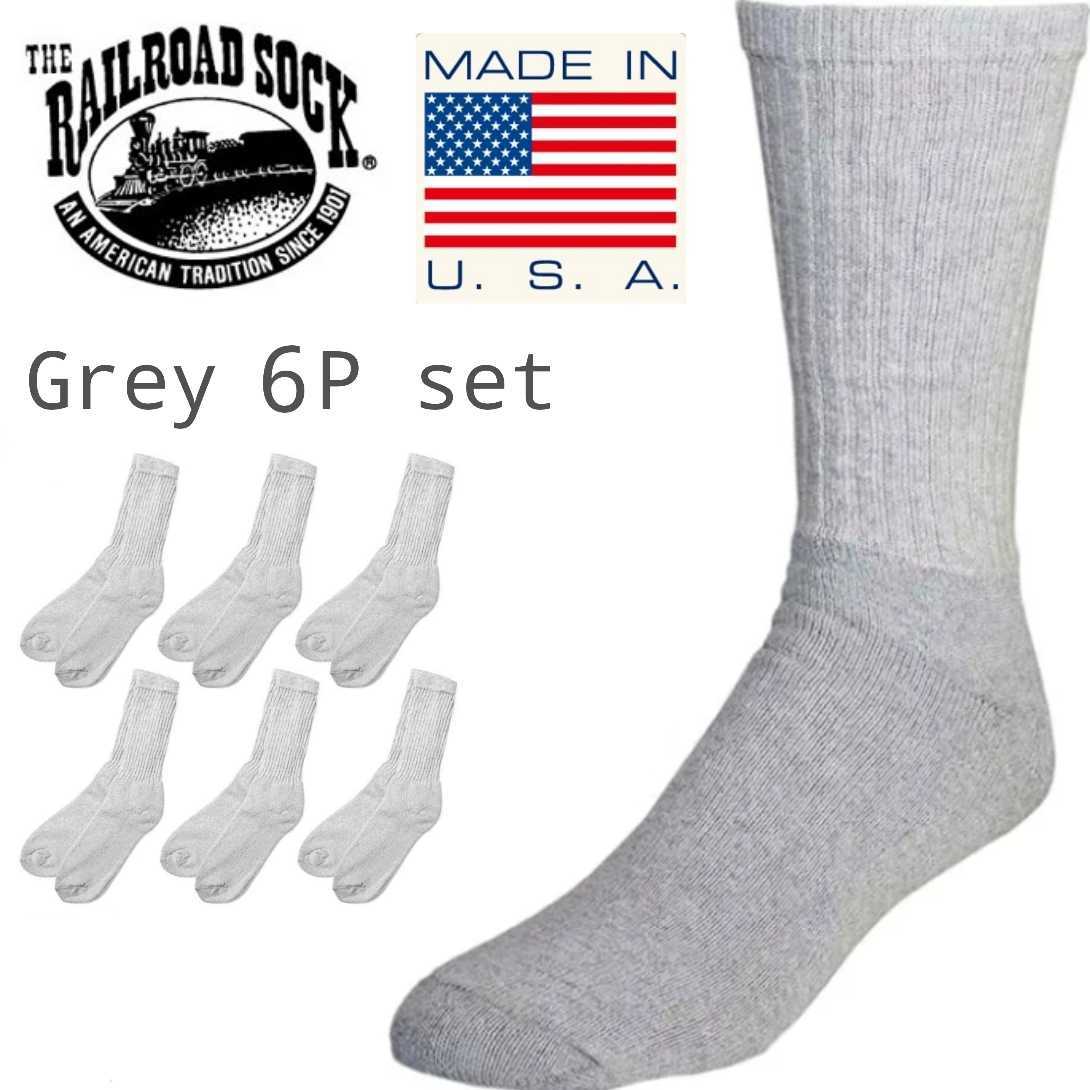 > 新品未使用 レイルロードソックス MADE IN USA グレー 6足セット メンズ 靴下 Railroad Sock