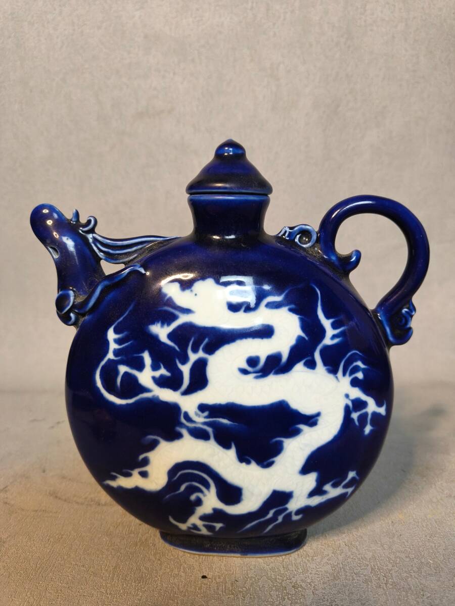 > 多宝閣 ■ 209059 中国磁器 中国骨董【青釉龍鳳凰頭壺】工芸品 施釉陶 陶芸 置物 收藏品 孤品