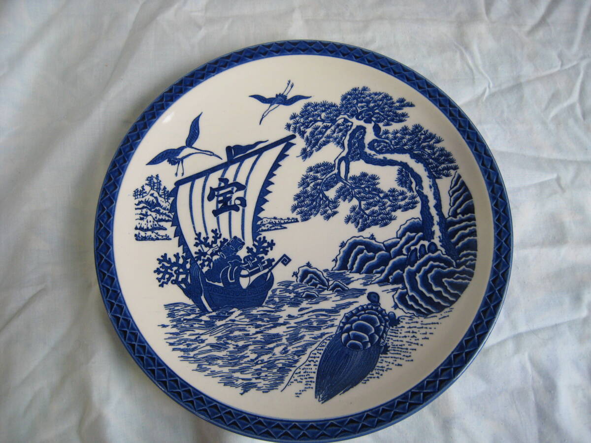 - ☆未使用・保管品 染付 縁起物☆ヴィンテージ 飾り皿 大皿