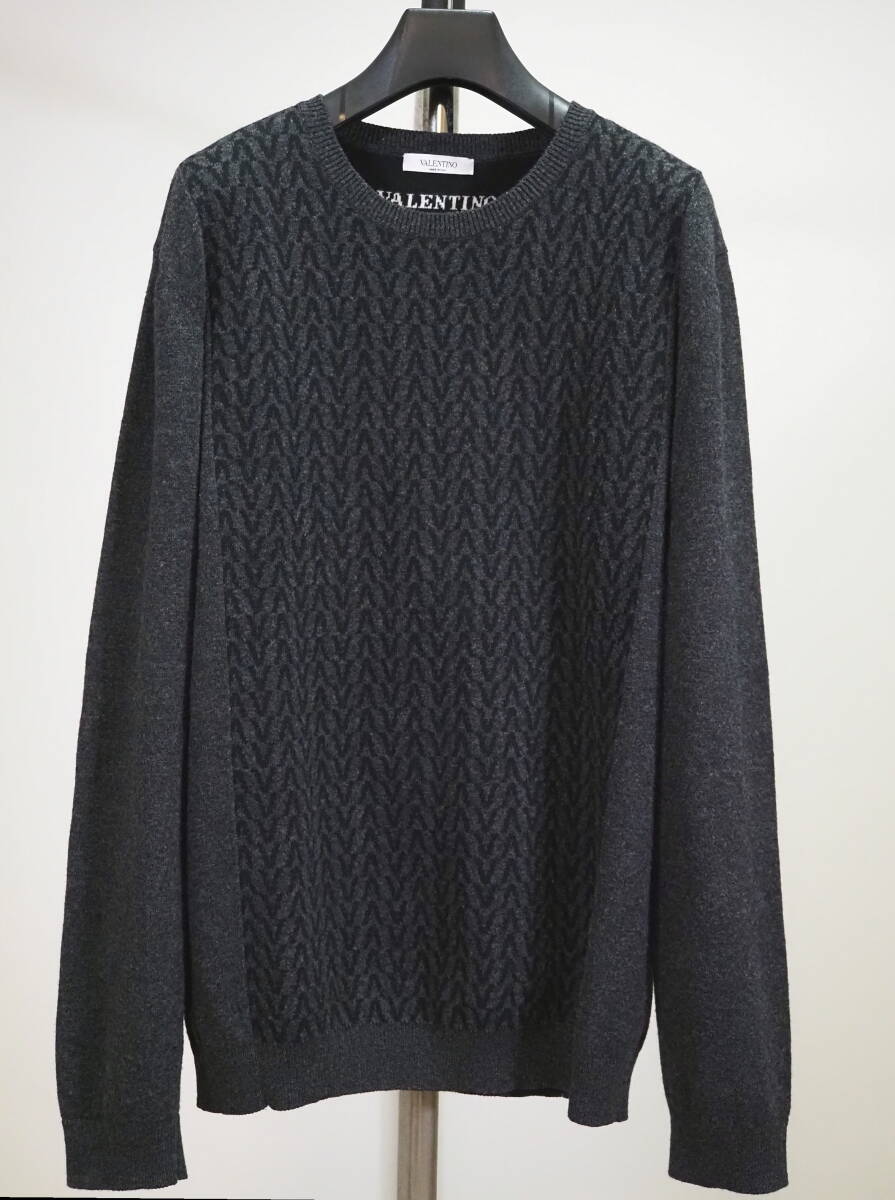 - VALENTINO ヴァレンティノ 21AW V字柄切り替えニットL灰 Italy製