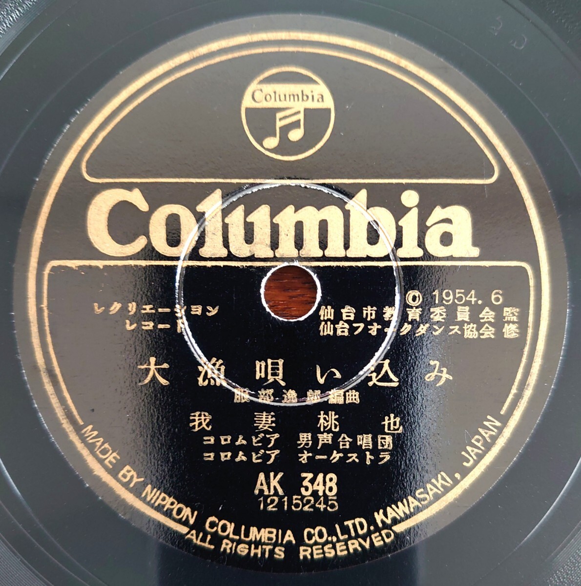 - 【SP盤レコード/美盤】Columbia AK348/仙台教育委員会監修/大漁唄い込み 我妻桃也/山形縣教育委員会監修/眞室川音頭 神楽坂はん子