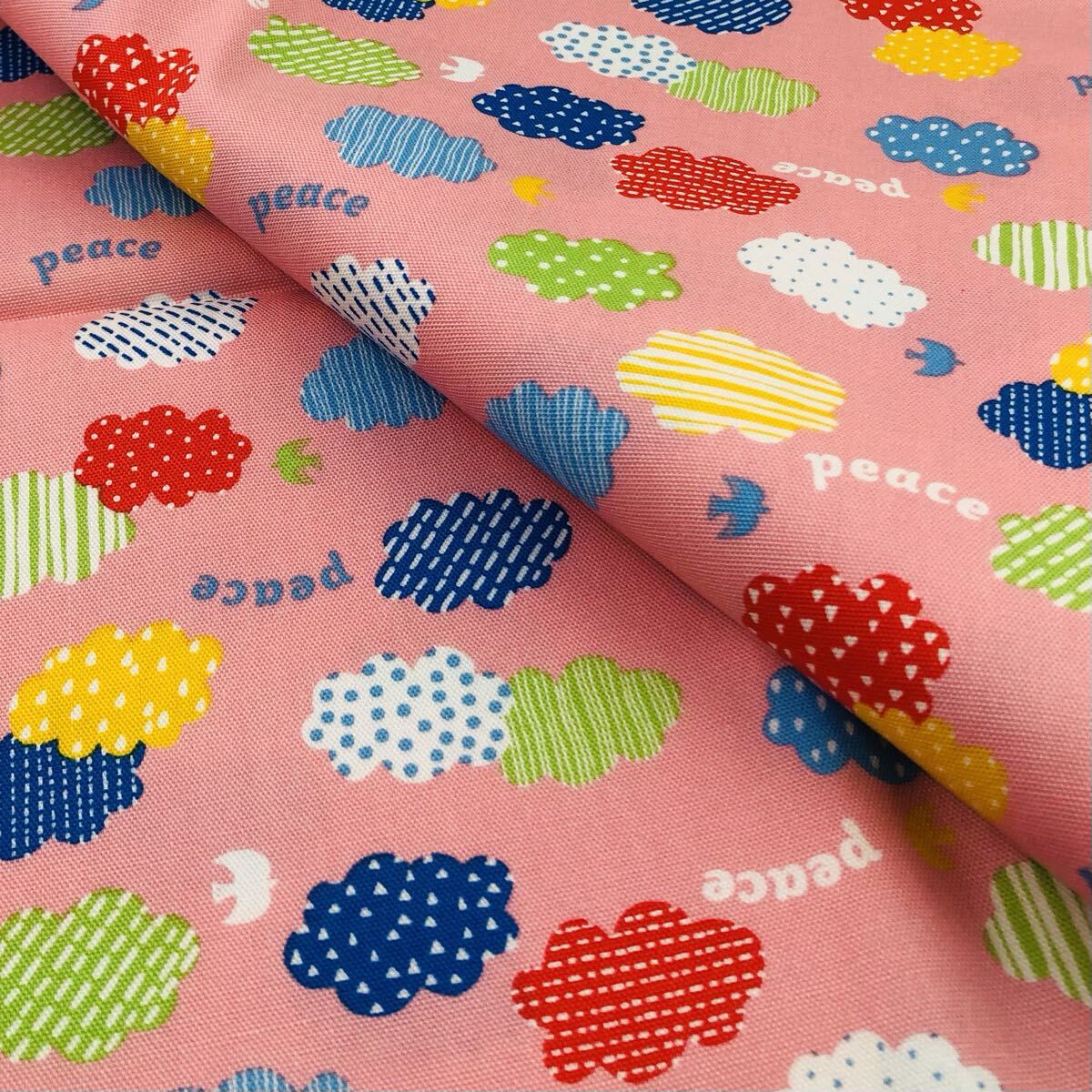 - 日本製 可愛い くも オックス 生地 1m コットン 110×100 はぎれ 雲 ピンク 入園入学