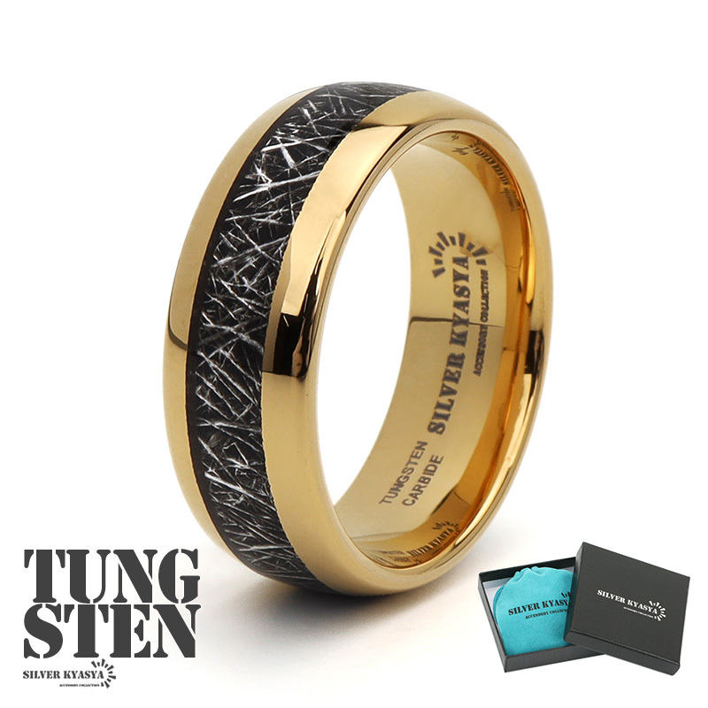 - (24号) タングステン リング メンズ 指輪 ゴールド 18K IP ブラック ダメージ お洒落 つけっぱなしOK 専用BOX