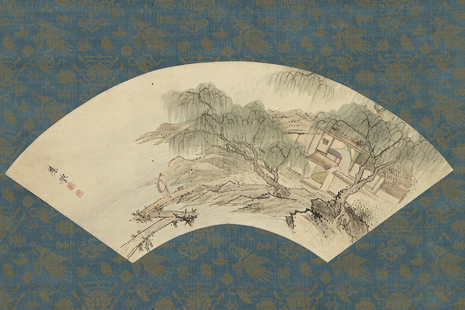 - 【真作】掛軸「円山応挙 柳亭高士図 扇面」江戸中期 福田剣山箱書 円山派祖 絵画