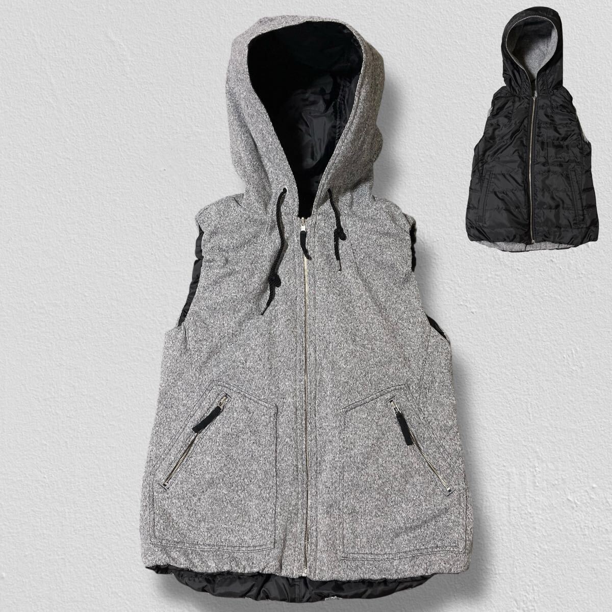 > PLST リバーシブルダウンベスト 2WAY グレー×ブラック サイズ2 ●洗濯プレス済● プラステ ベスト ダウン 黒 古着/618
