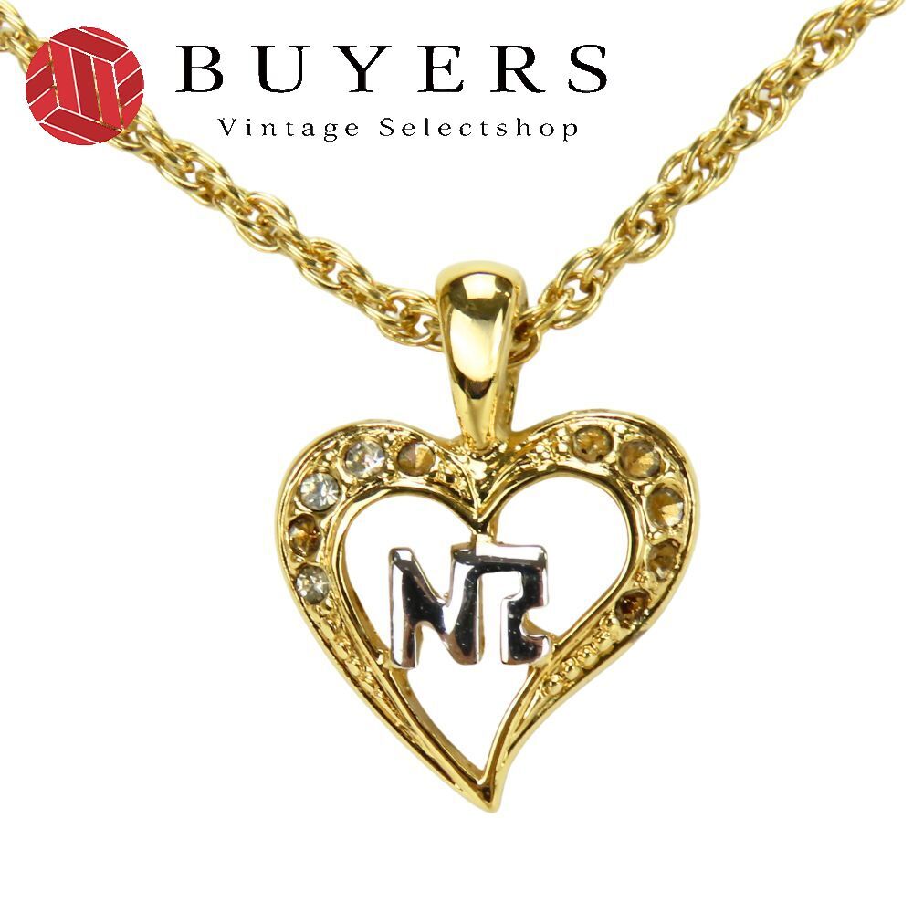 - 中古 ニナリッチ ネックレス メタル ラインストーン ゴールド シルバー ロゴ ハート アクセサリー レディース 女性