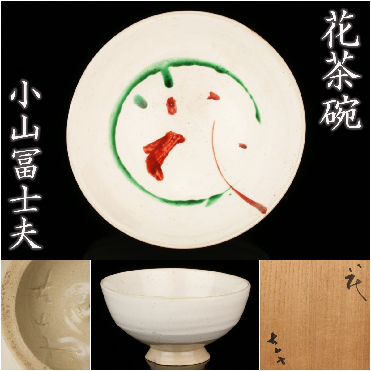 > 小山冨士夫(古山子)『花茶碗』代表作 共箱 図録コピー 本物保証 送料無料 図録同手作品!【松森美術】