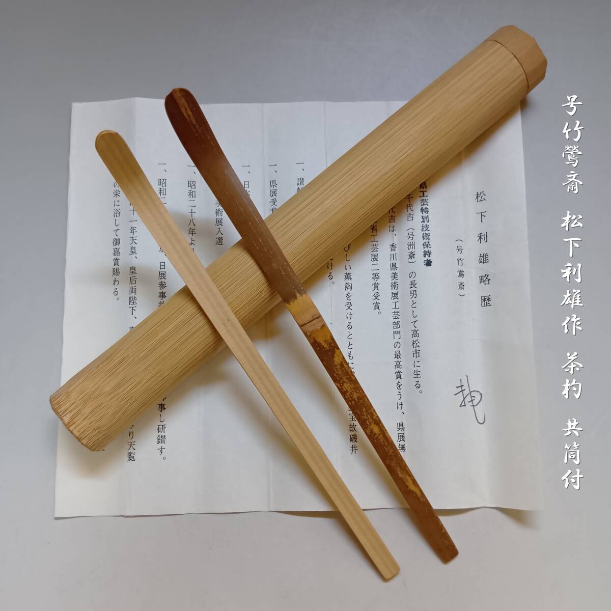- 【T-476】 号 竹鶯斎 松下利雄作 茶杓 2本 共筒付 茶道具