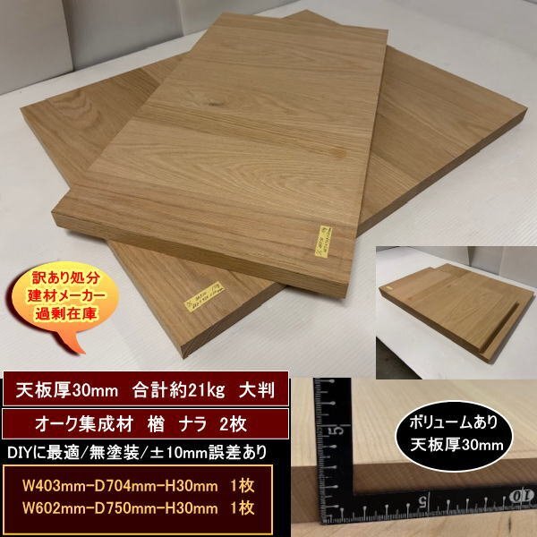 - オーク 楢 ナラ 集成材 端材2点セット 約21kg 無塗装 高級材 403-704-30mm 他1 送料無料 訳あり処分 重量あり DIY