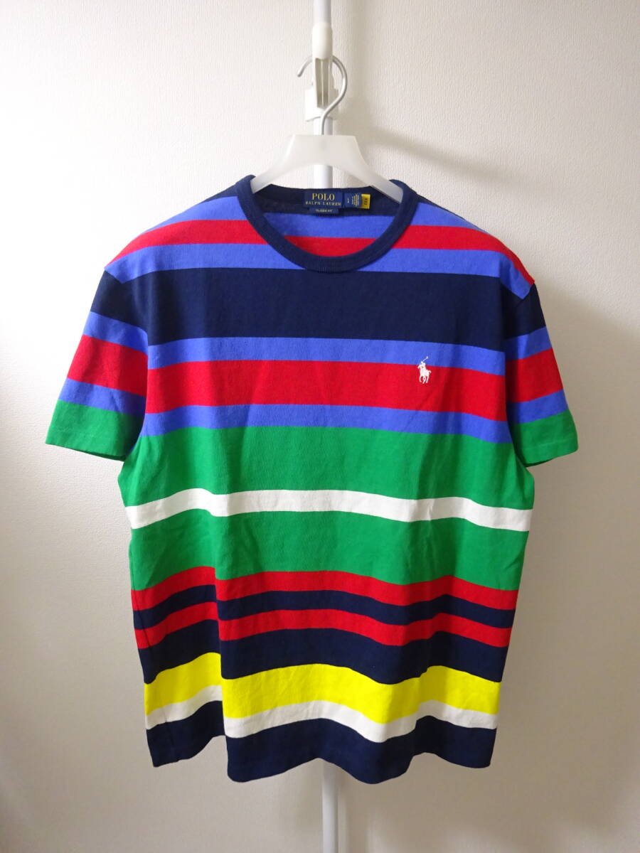 > POLO RALPH LAUREN 丸首半袖Tシャツ ボーダー柄 CLASSIC FIT 紺 青 赤 緑 白 黄色 メンズ L ポロラルフローレン