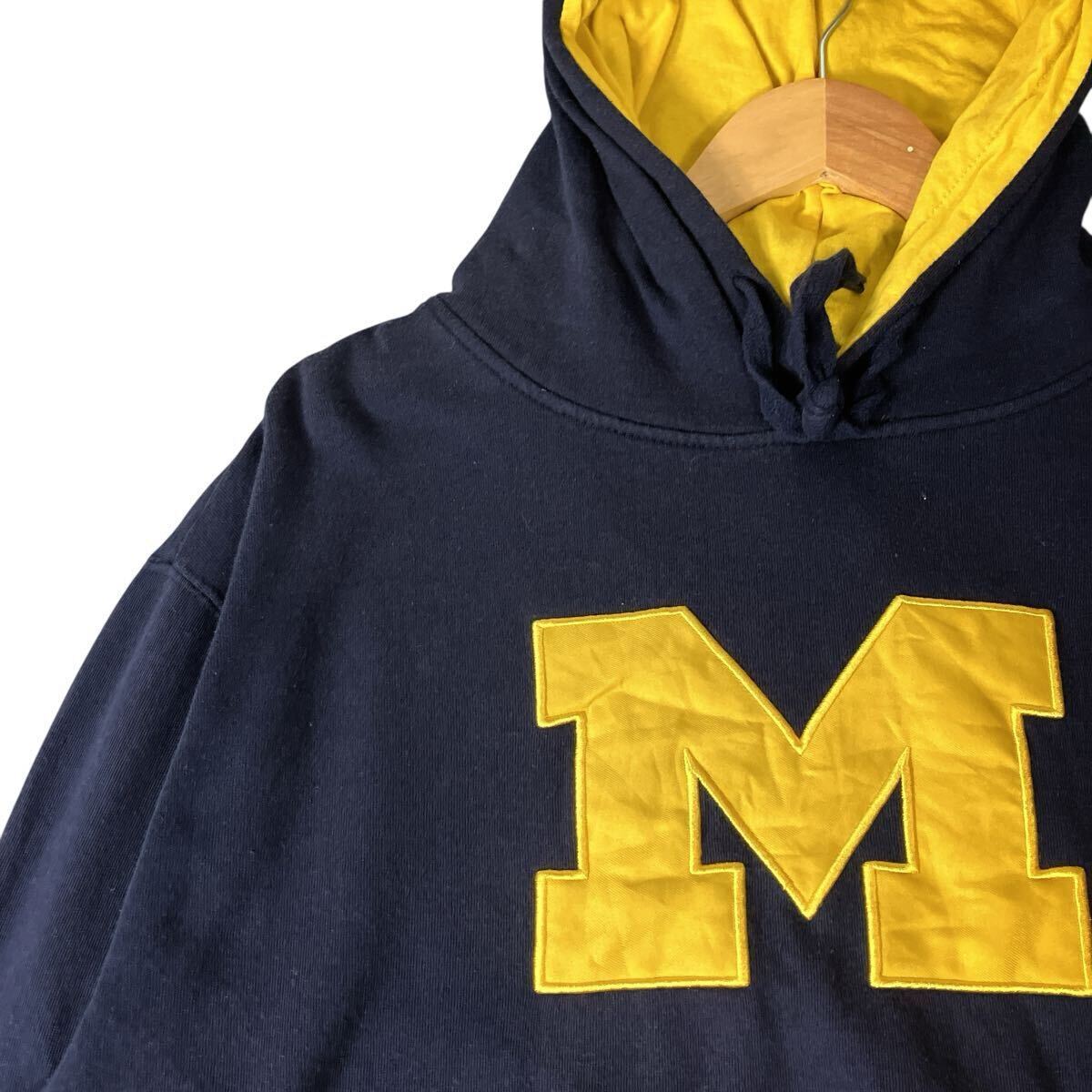 > カレッジスウェット パーカー フーディ 刺繍ロゴ XL 00s ミシガン ネイビー紺 古着 スウェット トレーナー ビッグシルエット 古着