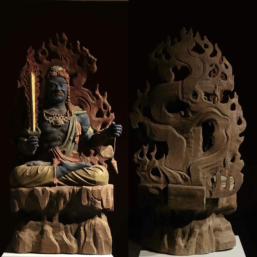 - ▼渡鶴羽▼A668明時代 楠木彩絵 不動明王 楠木細工彫刻★仏教古美術★仏像★細密細工★廃寺旧蔵★廃寺買出品