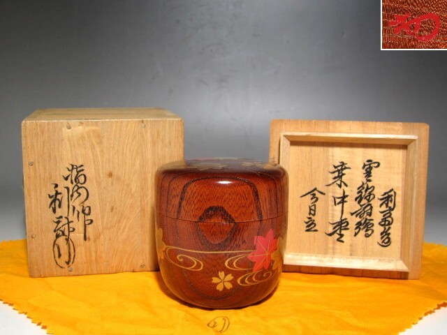- 千家十職駒沢利斎 雲錦絵桑中棗 裏千家淡々斎花押の名品☆c741