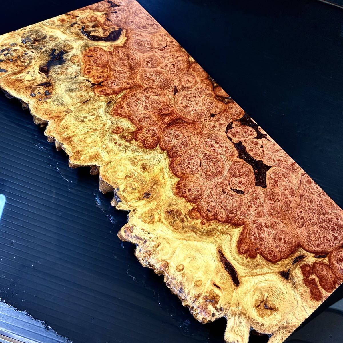 - 『OS0947』究極美杢 紅白青 花梨 瘤材 葡萄杢 板材 ペンブランク(縦幅厚341-181-20㎜) ハンドメイド素材 希少材 銘木