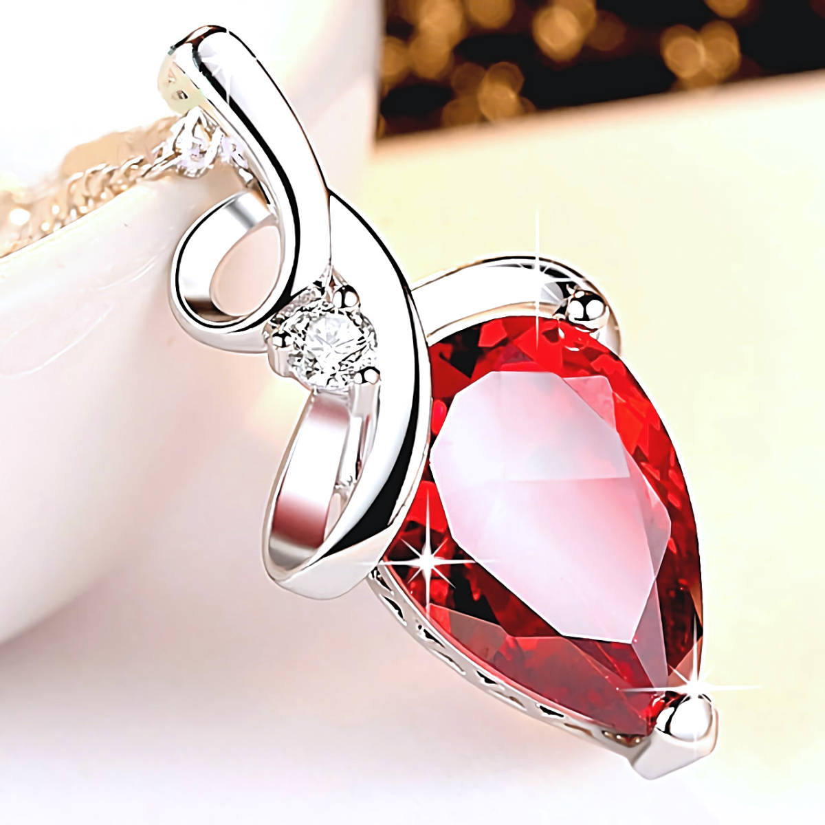 > 新品★送料無料★紅玉ルビー赤雫 万華鏡の輝き プラチナ仕上 925シルバーネックレス 誕生日プレゼント旅行連休秋祭冬休ギフト国内発送
