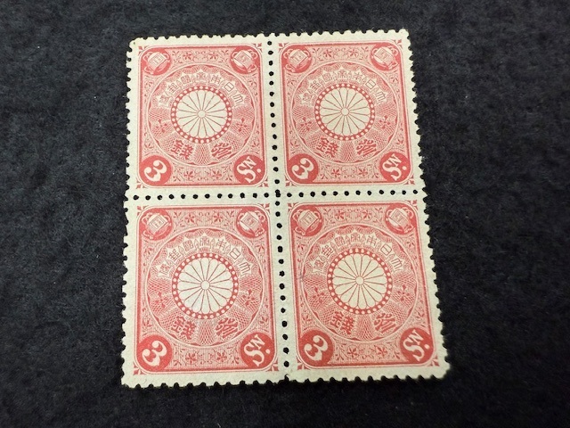 - 34、日本切手 1906年 菊切手 3銭 田型 糊無し 未使用