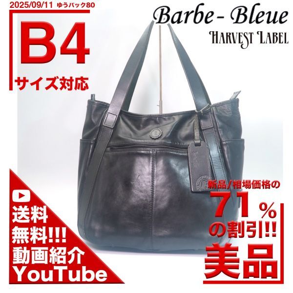 - YouTube 動画 送料無料 バルブブルー Barbe-bleue HARVEST ホース 肩掛 トート レザー 本革 黒 B4対応 バッグ