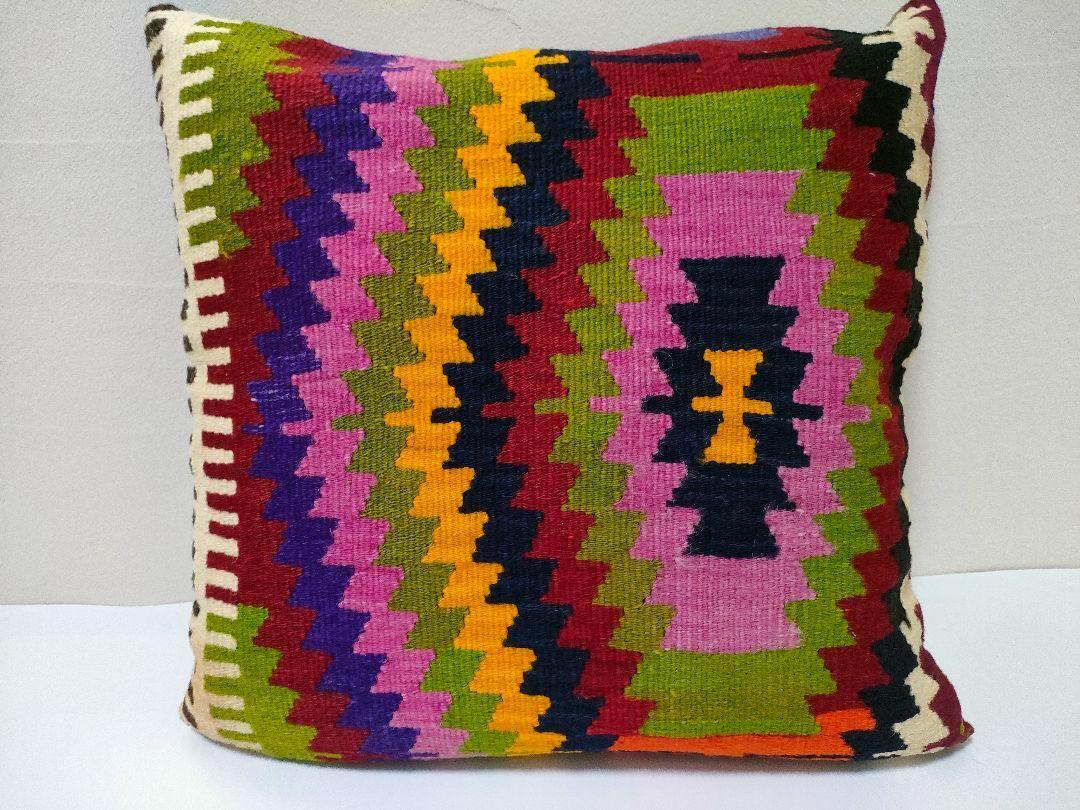- L16-26 トトルコ オールドキリムクッションカバー 50cmサイズ カラフル