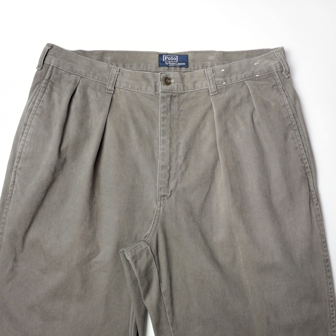 > USA製 80s RALPH LAUREN ビンテージ ラルフローレン 2タック コットン パンツ シャモアクロス? フェード グレージュ アメリカ製 42TALON