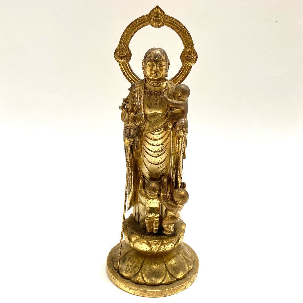 > 牧田秀雲作 子安地蔵菩薩立像 金メッキ仕上げ 仏教美術 仏像 金属工芸 仏教美術 骨董品 美術品 古美術 縁起物 置物 仏像