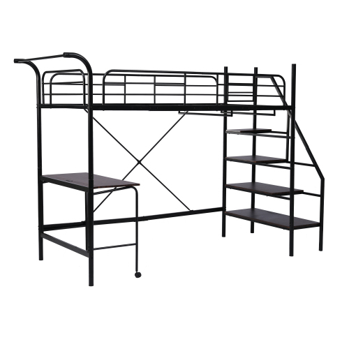 - システムベット ロフトベッド シングル デスク付き コンセント付き 収納付き ハンガーポール付き 耐荷重150kg 北欧風 スチール 耐震