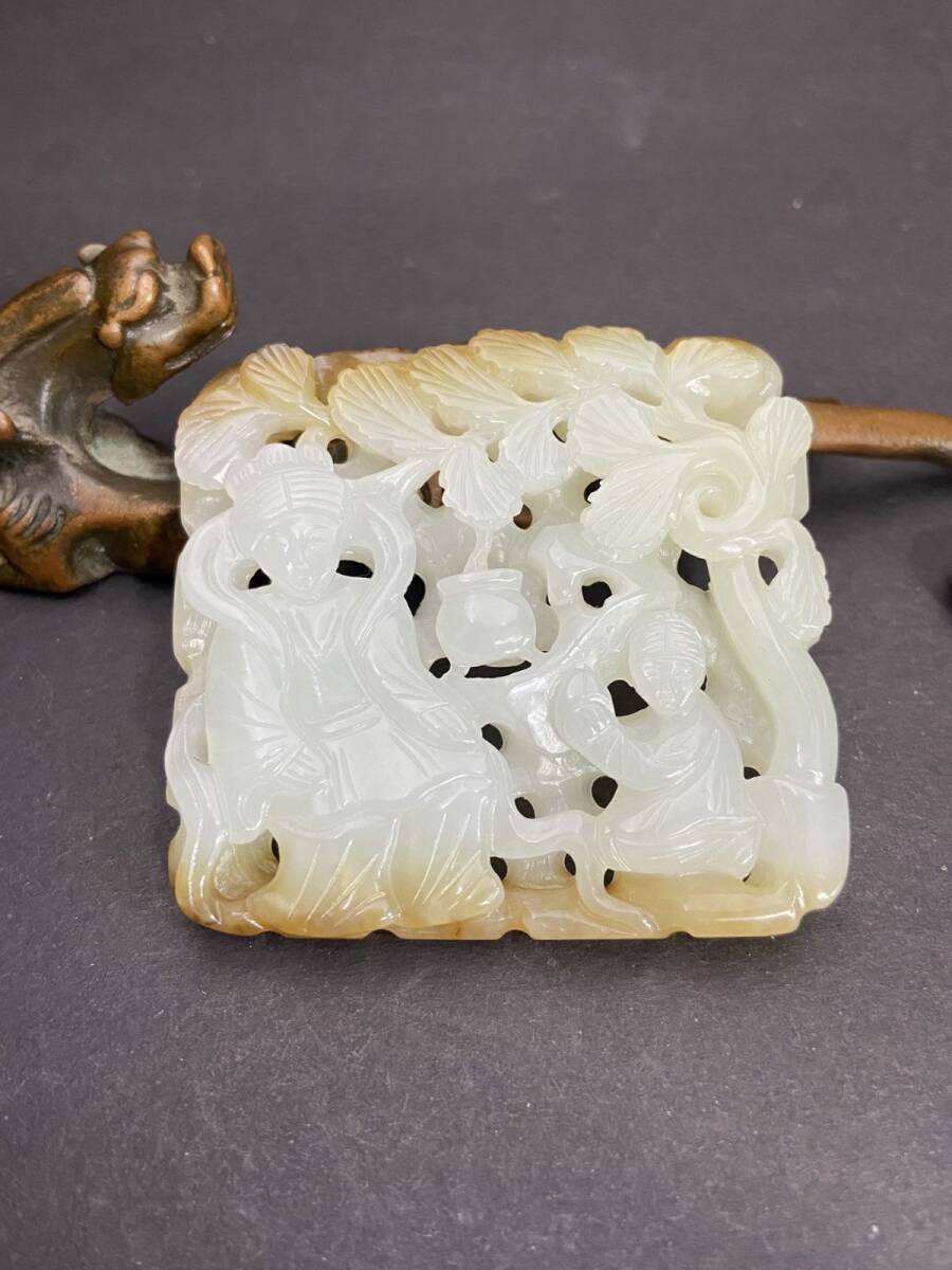 - 永し 清時代 和田玉 三娘教子 玉佩 彫り件 極細工 裝身具 根付 置物擺件 古美術品 時代物 古董品 収集 古美味 旧家蔵出 中国唐物 48g