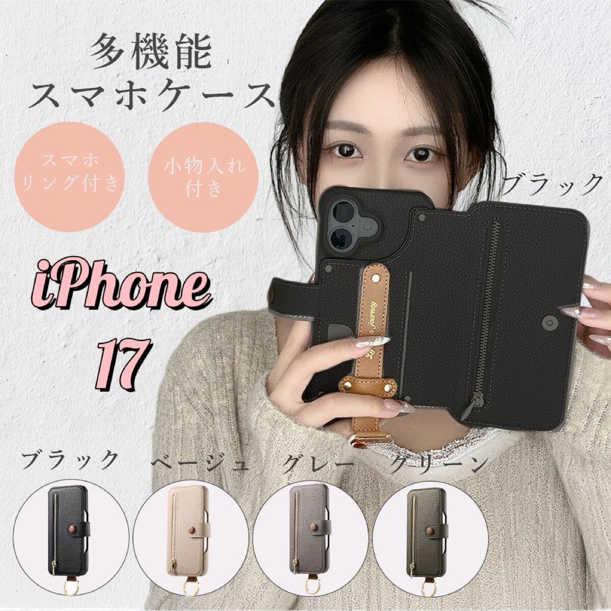 - 新品!大人気!iPhone17 ケース ブラック スマホカバー ベルト付き カード収納