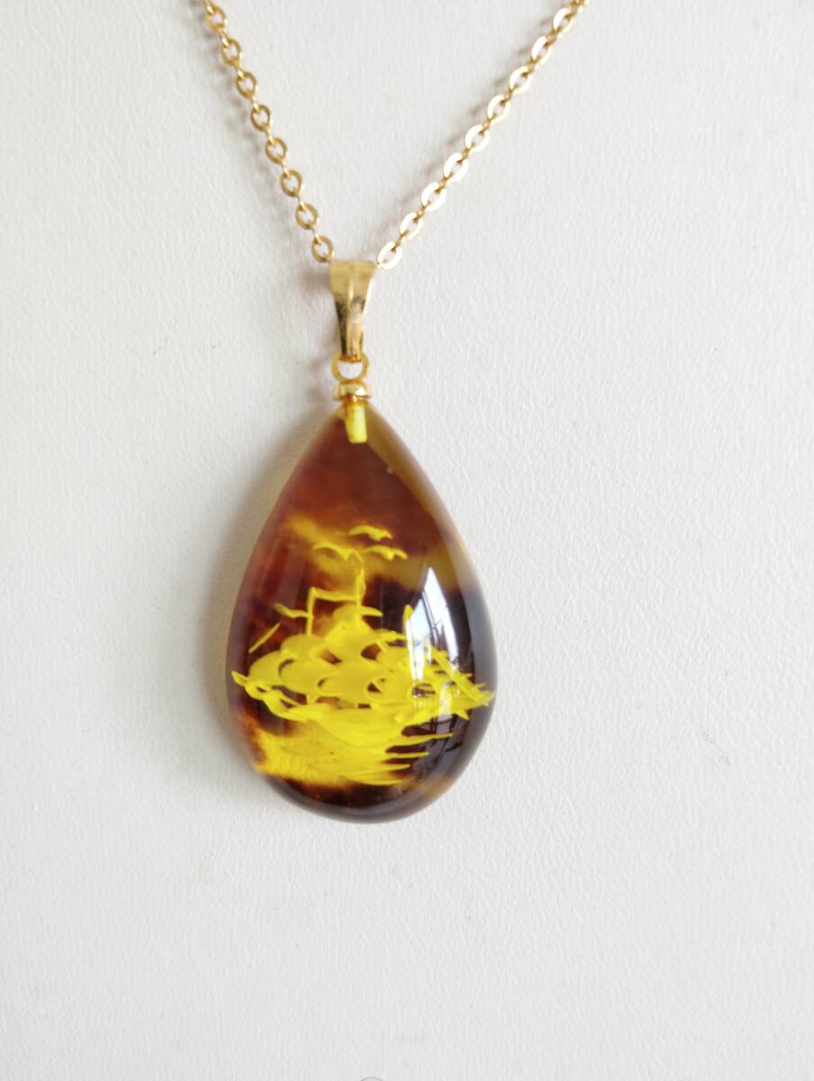 - べっ甲ペンダントネックレス・舟彫刻・美品