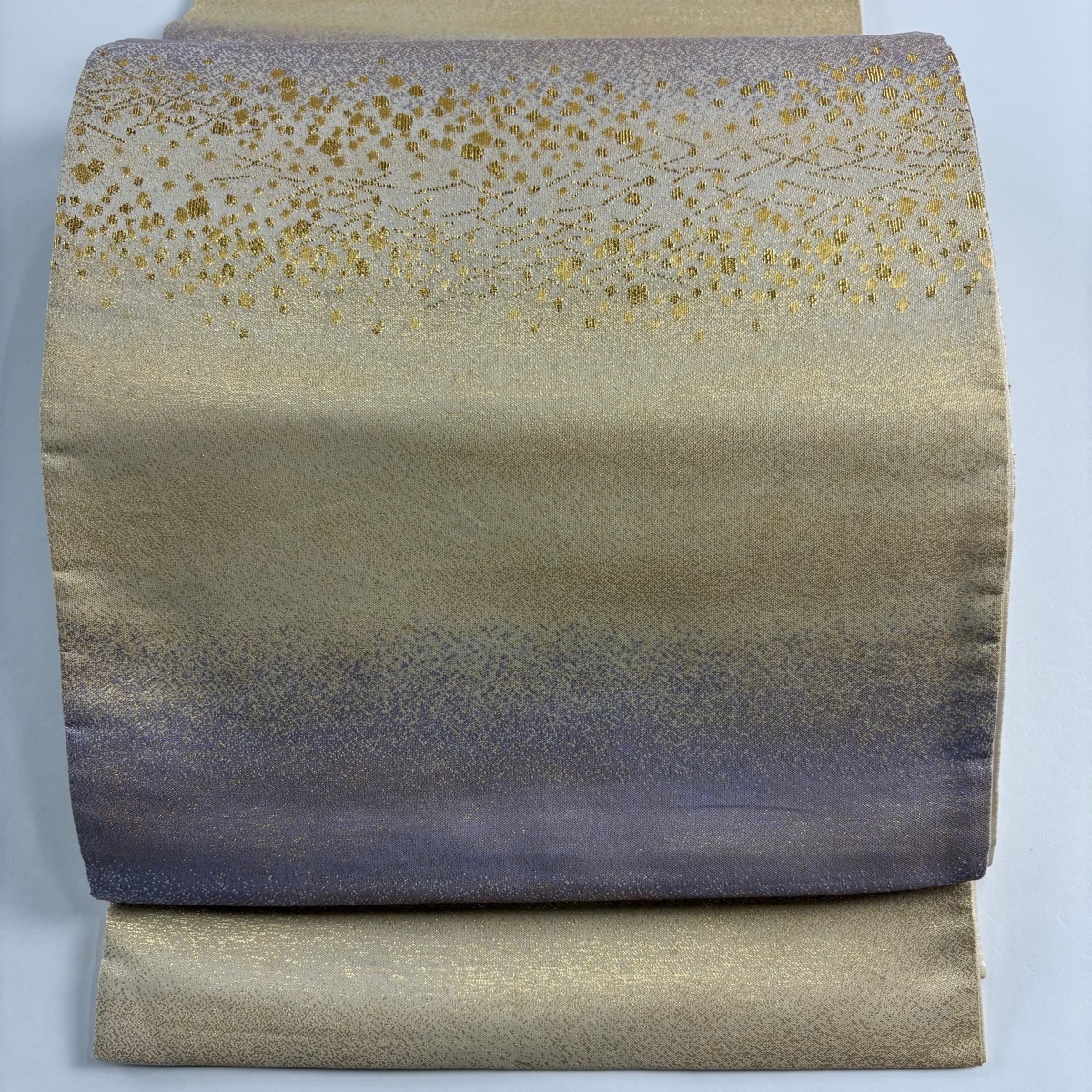 - 袋帯 秀品 箔散らし 段縞 箔 ベージュ 全通 正絹 【中古】