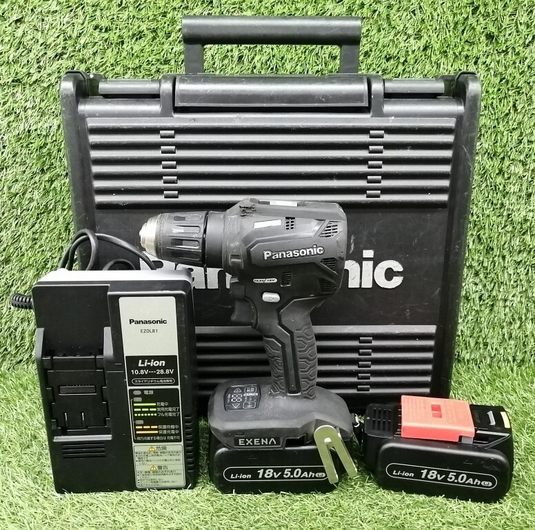 - 中古品 Panasonic パナソニック 14.4V/18V 充電ドリルドライバー 黒 + バッテリー 2個 + 充電器 + ケース セット EZ1DD1J18-B