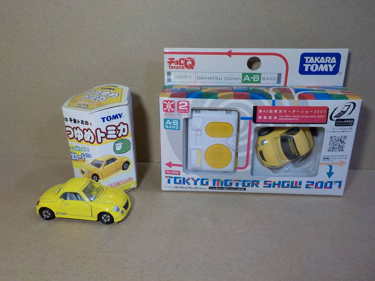 - d937★コペンL880K おもちゃ2個まとめて 赤外線コントロールチョロQ はつゆめミニカー 黄色コペン