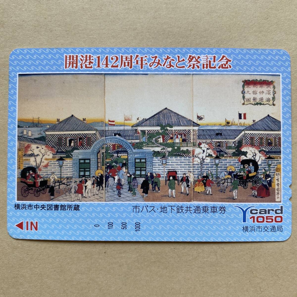- 【未使用】 浮世絵Yカード 額面1,050円 横浜市交通局 横浜海岸仲通商館繁栄之図 歌川国輝(二代) 開港142周年みなと祭記念