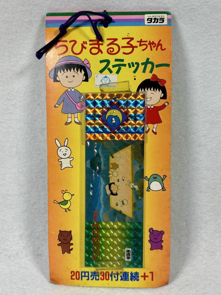 > レトロ ちびまる子ちゃん ステッカー 1束 30付+1 見本1 完品 タカラ 当時物【デットストック】駄菓子屋 さくらももこ プリズム キラシール