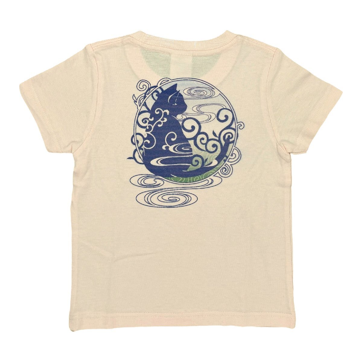 - [江戸てん]1点のみ 子供Tシャツ 背面に「唐草猫と流水」(前面は無地) 綿100% 捺染プリント キッズ ピンク 100