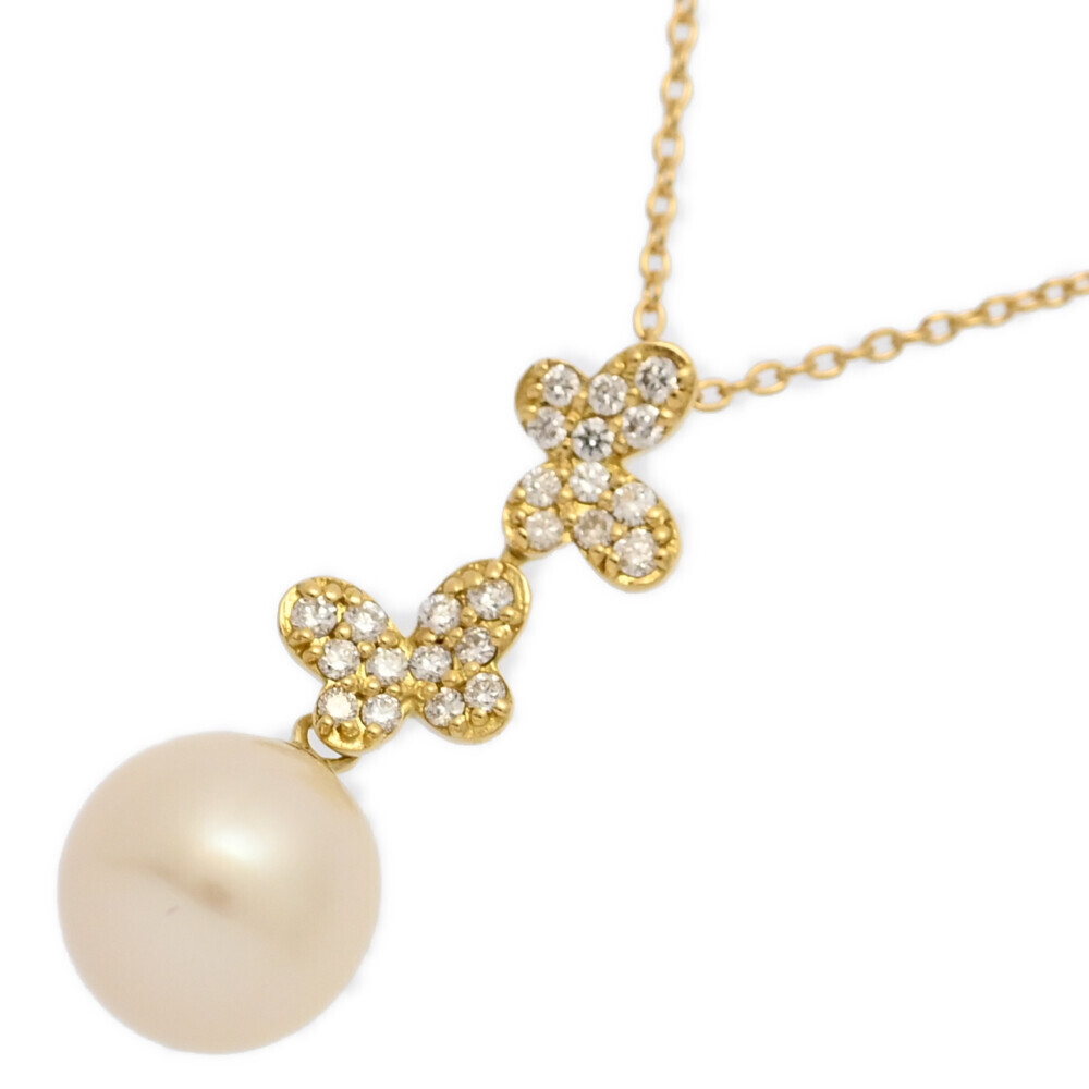 - FD:0.14ct/Ponte Vecchio ポンテヴェキオ 白蝶真珠/サウスシーパール/ダイヤモンドネックレス・ペンダント/K18YG/750-2.7g■589633