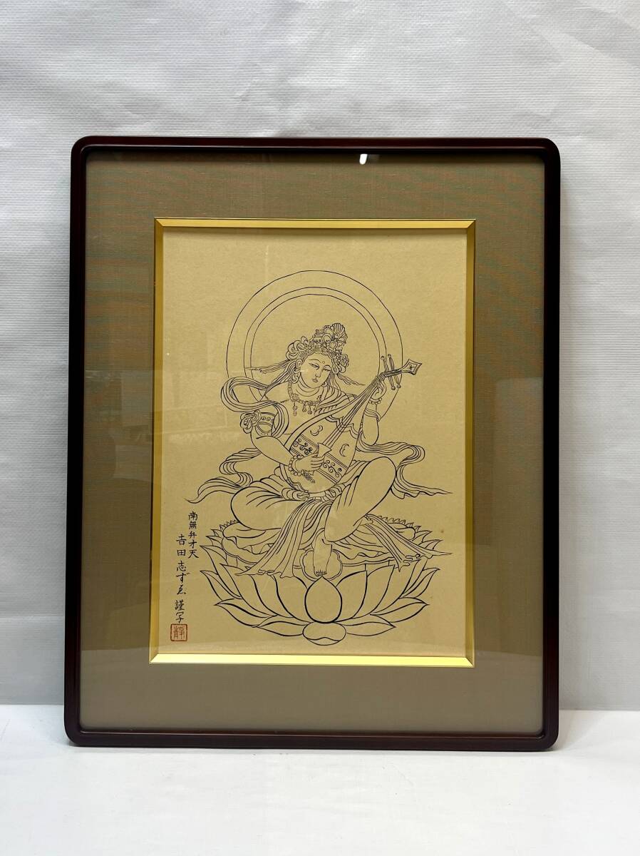 - 極美品!南無弁才天 肉筆 吉田しずゑ 額縁外寸510×630×23mm 木製額 七福神 弁財天 縁起物 開運 日本画 美術品 アート 作家物 D